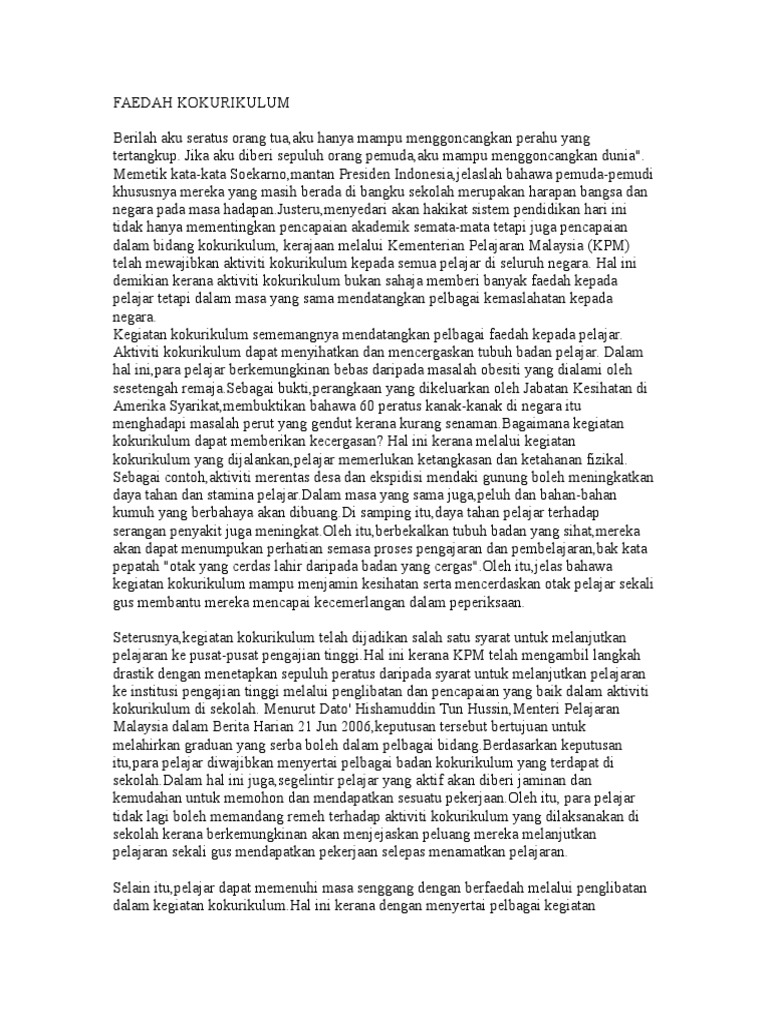 Faedah Faedah Menyertai Aktiviti Kokurikulum from imgv2-2-f.scribdassets.com We did not find results for: Check spelling or type a new query. Karangan faedah menyertai aktiviti kokurikulum. Maybe you would like to learn more about one of these?